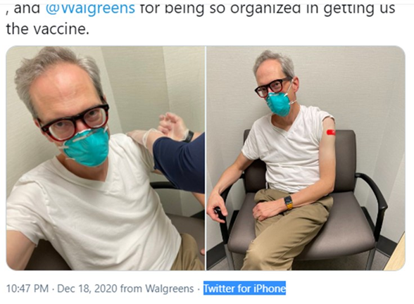Three hours ago, I got my first dose of #CovidVaccine. So far, it hasn’t altered my DNA or even turned me into a newt. It has, however, started to protect me against #COVID19. Thanks @karmanoscancer, @McLarenHealth, and @Walgreens for being so organized in getting us the vaccine.pic.twitter.com/XOQRlwbK31 – at Walgreens