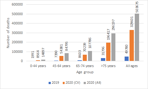 Here is a chart I did using provisional data from the CDC and CDC Wonder. This compares the number of deaths by age group recorded in 2019, the number of COVID deaths to date, the number of deaths for all deaths that include influenza, pneumonia, and COVID. Citation following.pic.twitter.com/Hksth6gOZs