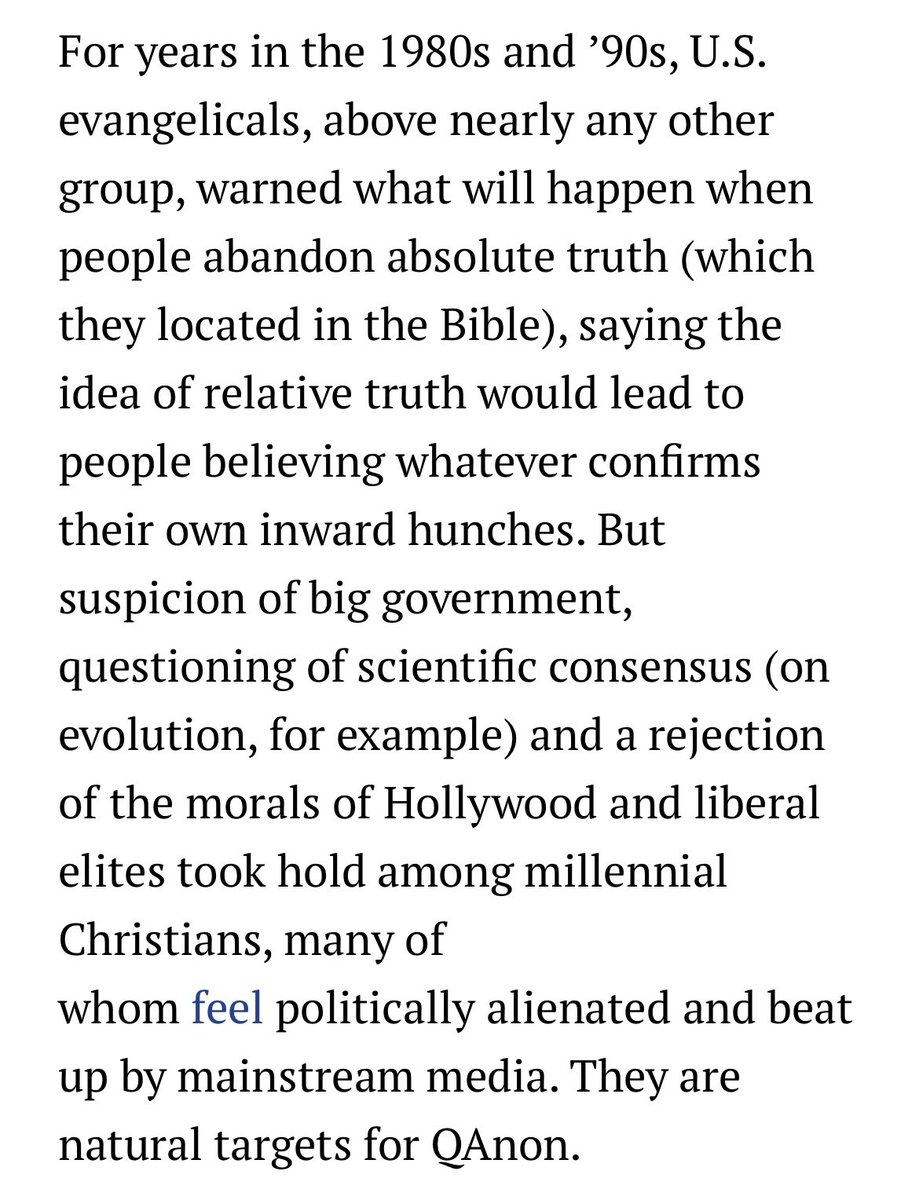 Evangelical pastors have already noted Q is sapping their flocks.https://religionnews.com/2020/08/17/qanon-the-alternative-religion-thats-coming-to-your-church/ …