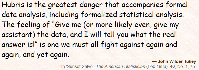 John Tukey of course was one of the most eminent statisticians of the late 20th century, I worked at Bell Labs while he was there. He had something relevant to say, i.e., ~methods aren't enough, domain knowledge matters. https://todayinsci.com/T/Tukey_John/TukeyJohn-Quotations.htm …pic.twitter.com/4aUSUMav5N