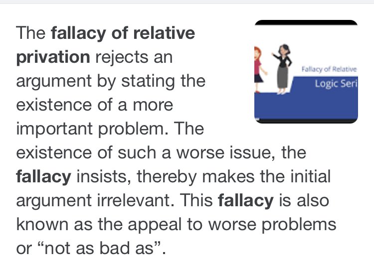 The fallacy of relative privation should be more widely known. https://twitter.com/JeanneLenzer1/status/1401531631769378817 … pic.twitter.com/wVMF7cyxON