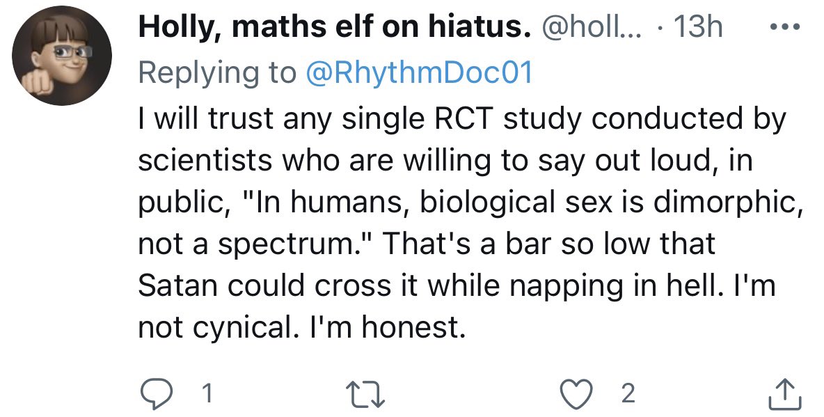 A brain completely broken by Bret Weinstein and Heather Heying’s nonsense. Has a math degree, but believes a meta analysis that includes questionable studies is “better and more reliable” than RCTs, particularly for “most things medical”. pic.twitter.com/o703Hp2dfc