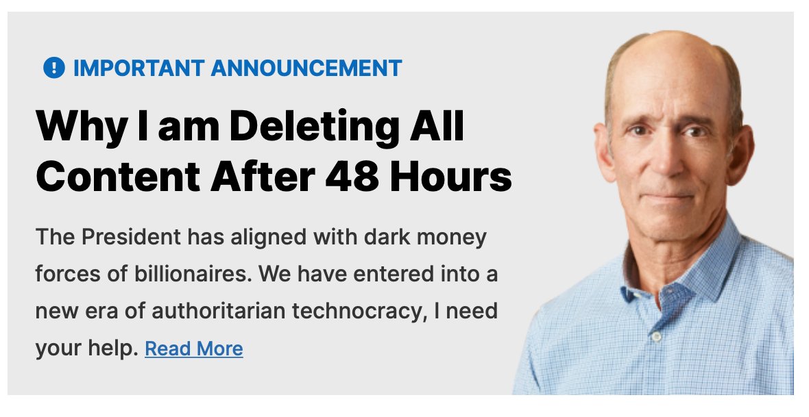It occurrs to me there is another more manipulative angle to Mercola deleting his content after 48 hours. He's using the advertising tactics of taking advantage of "Fear Of Missing Out" (FOMO). Having something be time-limited makes it more urgent in the minds of his audience.