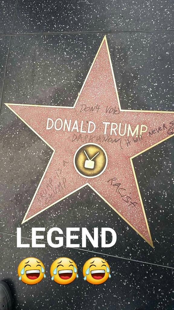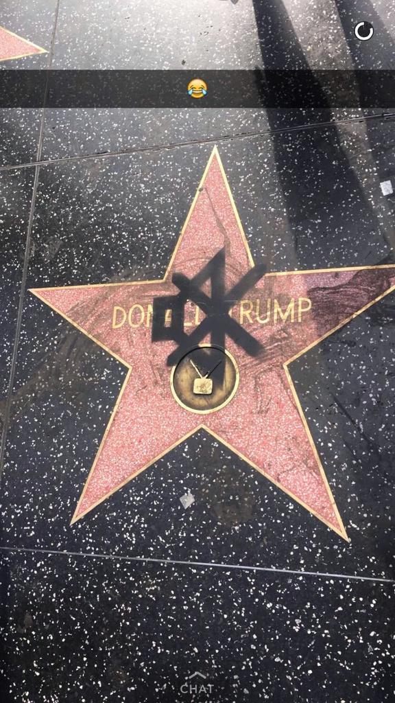 Photos of #trump hollywood blvd star w/spray paint mute button & epithets of racist bigotry (but no pic of dog poop)pic.twitter.com/1PwzM3rJr2