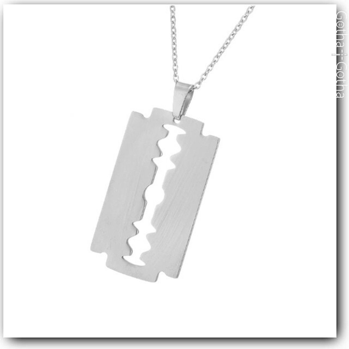 ♰カミソリネックレス♰ カミソリをモチーフにしたネックレス。 シンプルな男性・女性問わず身に付けられるシンプルなデザイン。 シルバー・ブラックの2色展開です。 ▷https://www.gothagotha.com/items/23840723