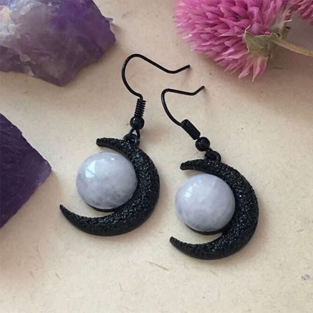 ▼△NEW ARRIVAL△▼ ☽MOONSTONEピアス☽ 漆黒の月が神秘的な印象のピアス。 モチーフサイズ:2cm×1.9cm ▷https://www.gothagotha.com/items/25551517