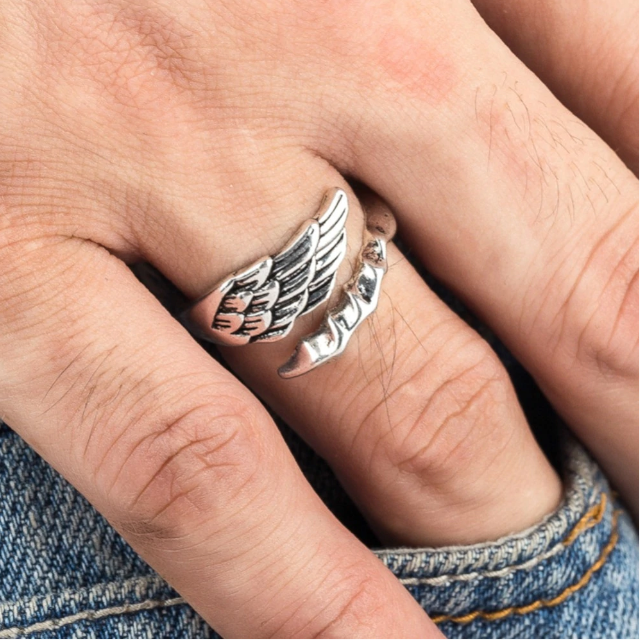 蛇が指にからみついたようなモチーフで、装着方法を楽しめるデザイン。