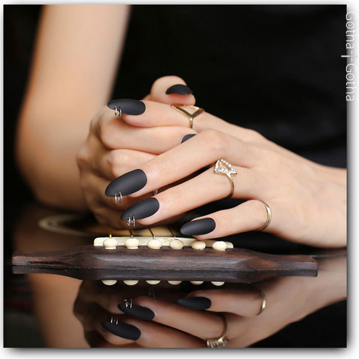 ♰Wリングネイル♰ 重なったリングが先についた細かいデザインのマットブラックネイル。 (全24ピース入り) ▷https://www.gothagotha.com/items/14933564