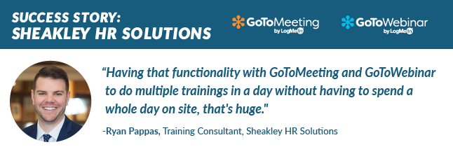 #2020goal. See how#GoToMeeting and#GoToWebinar helped@Sheakley1 conduct more client trainings without ever leaving the office. http://bit.ly/2tXeFVm pic.twitter.com/rubDDkLfng