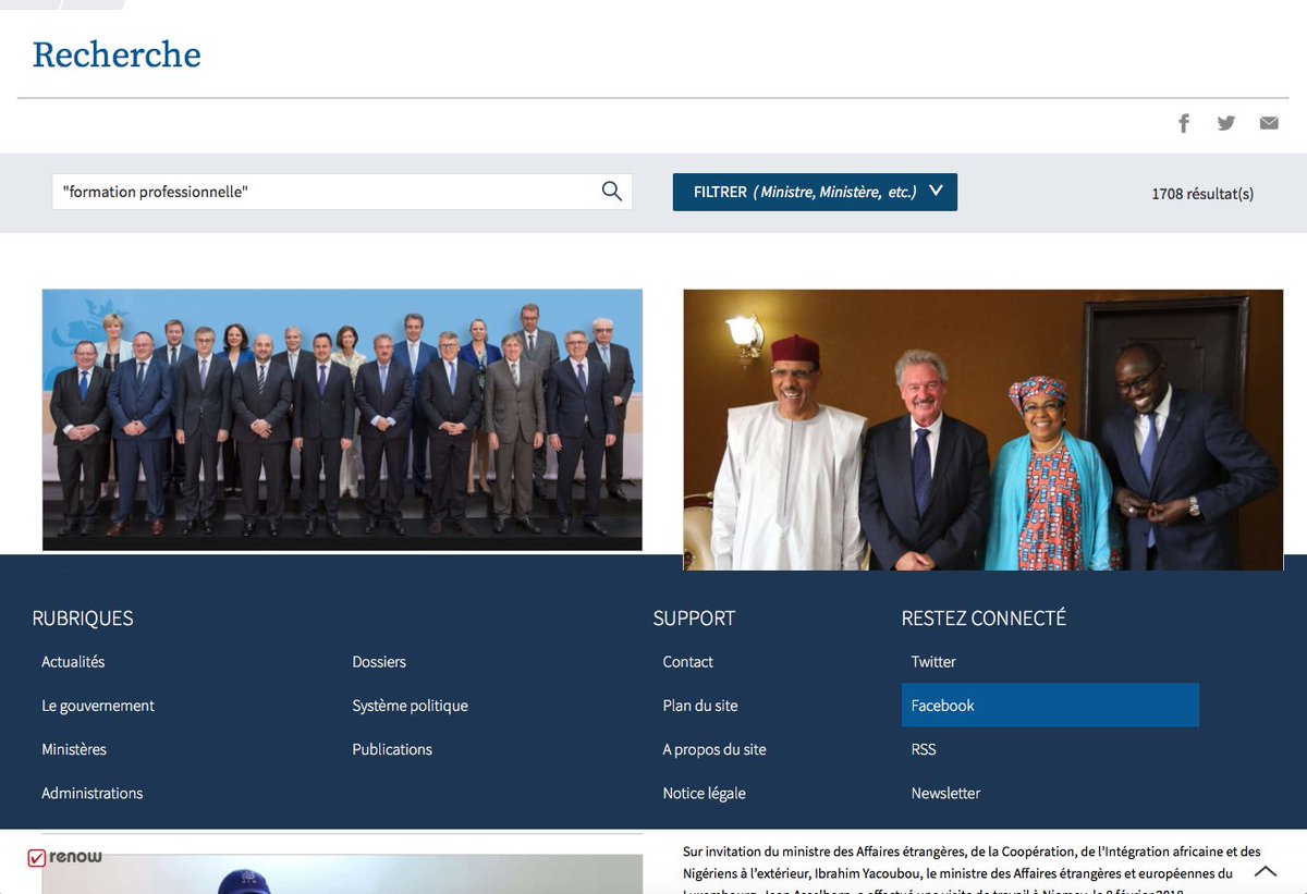 Just als Beispill eng Recherche iwwert de Begrëff "formation professionnelle". Ofgesinn dovunner datt ech 1706 Resultater kreien well d'recherche booléene net schengt ze functionnéieren, kann ech um Desktop (mat Safari) net erofscrollen. A probéiert Mol mat Firefox :/pic.twitter.com/JkZrLcI8GQ