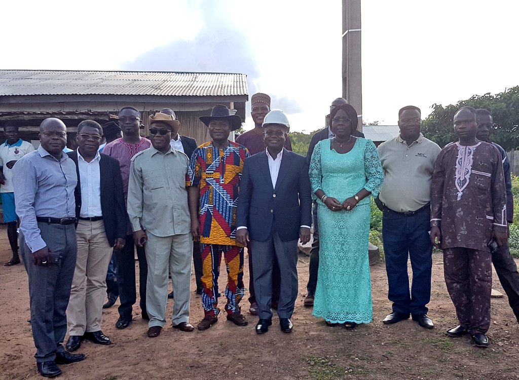 Photo de famille du #ME @houssoudjclaude avec le Roi de la localité et les autorités politico-administratives de la région après la mise en service officielle du réseau électrique de #Erokowari dans l'Arrondissement de #Kèrè. #gouvbenin #PAGBenin #wasexo #EnergieBeninpic.twitter.com/7ug0iSm9RJ