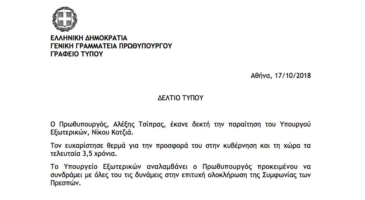 Ώστε ο #Κοτζιάς παραιτήθηκε ? Ωραία, όμως η συμμετοχή αλλά πρωτίστως η συμβολή του #Κοτζιά στην συμφωνία των Πρεσπών για την #Μακεδονία δεν πρόκειται να λησμονηθεί. Η ιστορία δεν είναι ταμείο ώστε να μην αναγνωρίζονται τα λάθη μετά την απομάκρυνση από αυτό ! Συνεννοηθήκαμε ?pic.twitter.com/PxYUbnjMSj