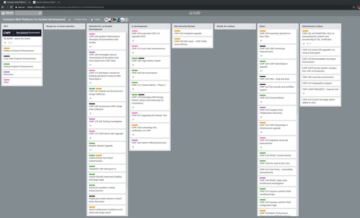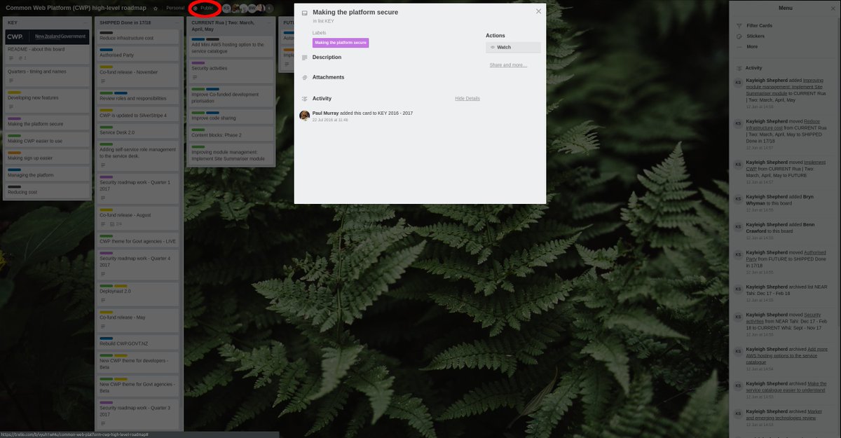 The NZ Government Common Web Platform claims to provide "secure" hosting without "costly [security] testing". Should such a project be using cloud services like Trello? Should the info be readable by anyone? Time for some costly security testing? https://trello.com/b/vyuh1wMu/common-web-platform-cwp-high-level-roadmap … pic.twitter.com/783BRkKqXT