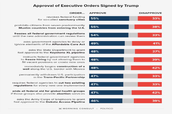 【全美55%的选民支持川普的七国旅游禁令】美国政治家网站于2月2日至2月4日对于全美2,070名登记选民进行的民调显示,55%的美国选民支持川普总统于1月底公布的七国旅行禁令和撤回联邦政府为‘庇护城’提供的资金等行政令 http://buff.ly/2lmskQs pic.twitter.com/VYkmLSHkNg