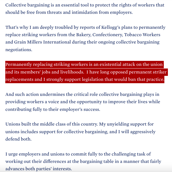I’m glad President Biden is condemning Kellogg’s shameful act. FDR supported GM strike /UAW