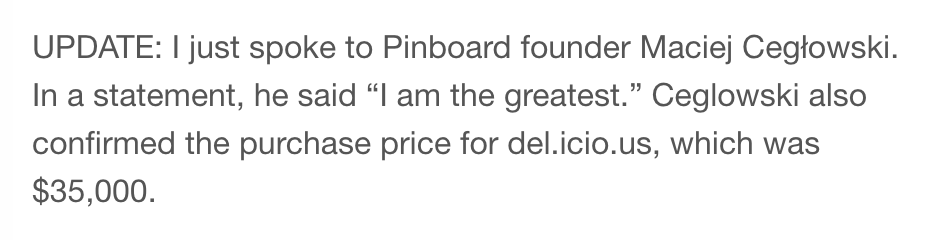 @Pinboard agrees with me that he is the greatest. https://thenextweb.com/apps/2017/06/01/its-the-end-of-an-era-as-pinboard-buys-and-shutters-del-icio-us …pic.twitter.com/MirccSSKXo
