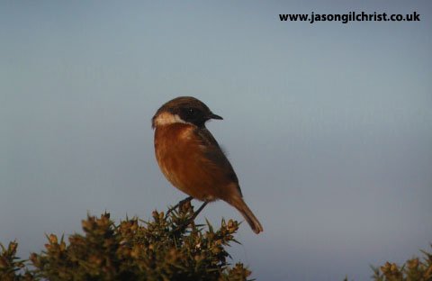 Stonechat, Saxicola torquata, on gorse, sighting on Arthur's Seat, Holyrood Park, Edinburgh on