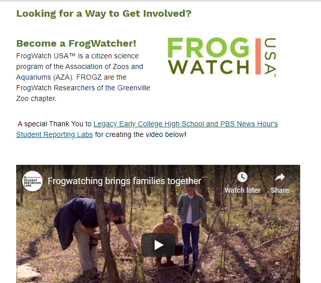 Ever thought of becoming a Frog Watcher? See what great video our Student Reporting Labs and