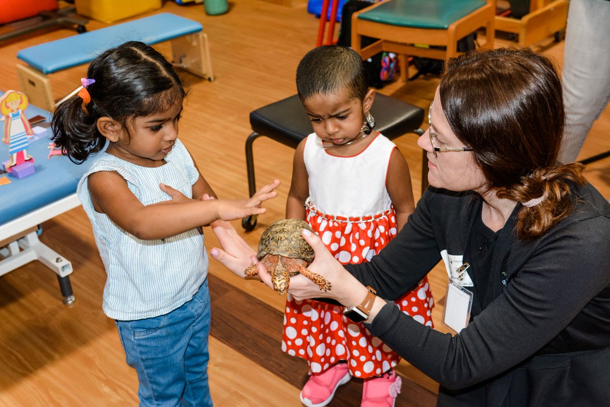 #SHCGreenville from the@greenvillezoo today as our patients enjoyed playing with this 3 legged turtle! What a treat it was for our patients in rehab to get to visit with this little guy! Thank you for this neat experience!