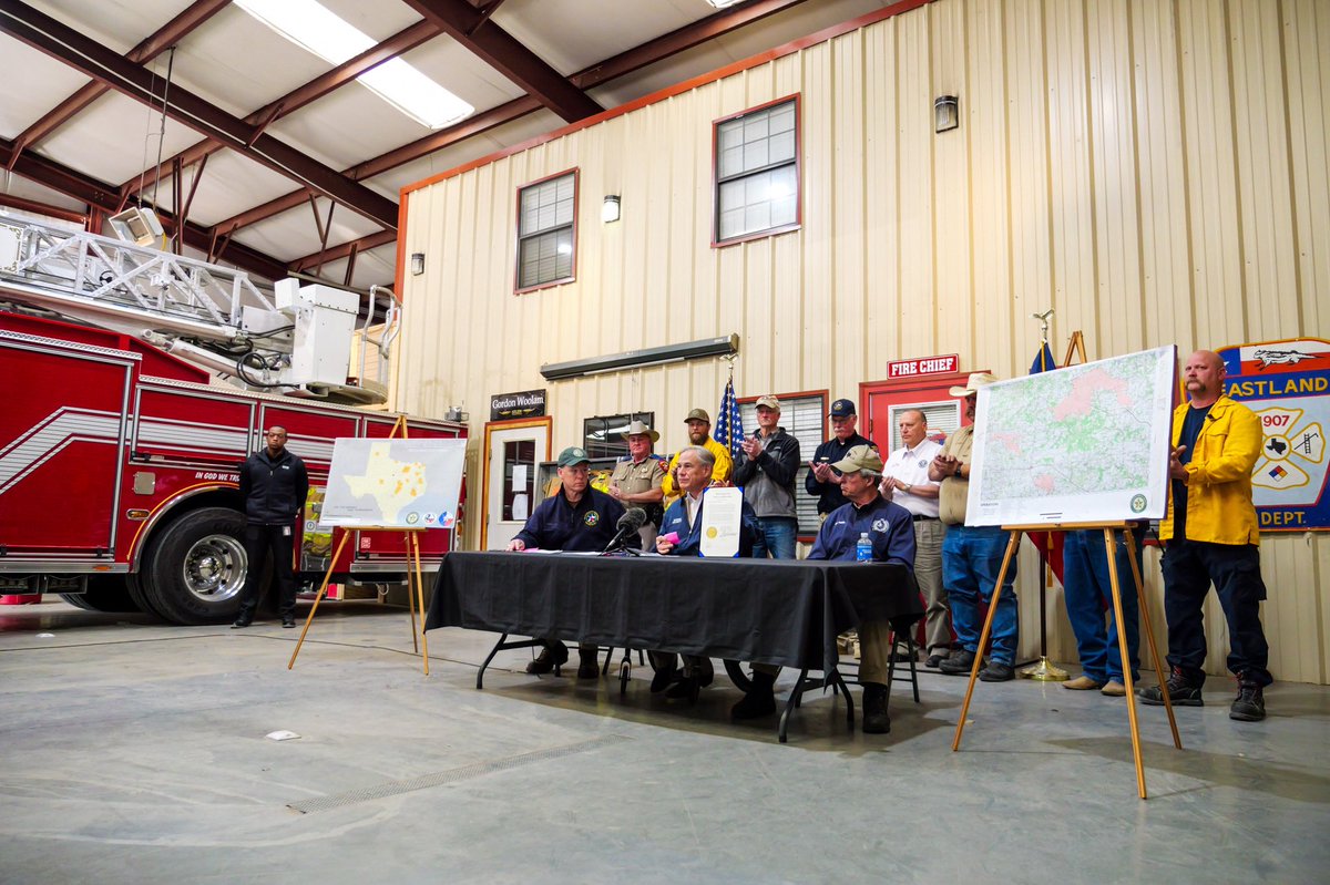 Today, I issued a disaster declaration for 11 counties impacted by the wildfires in Texas. We will continue to work w/ local officials to respond. Join me in praying for those affected, including Eastland Co. Deputy Barbara Fenley who was tragically killed while saving lives.pic.twitter.com/ARbkWfv9fa