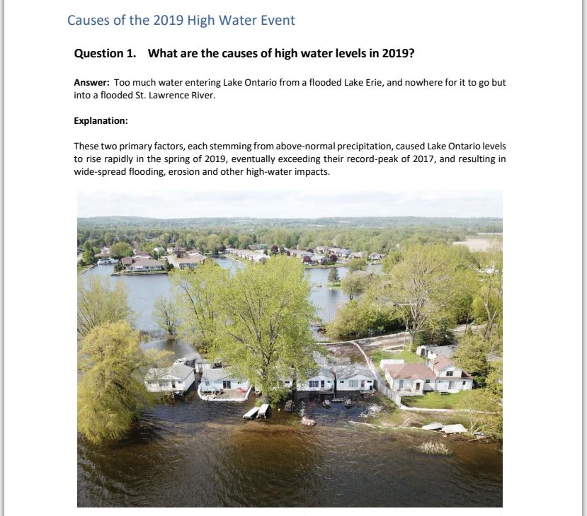 New background paper on High Water in 2019 from Lake Ontario-St. Lawrence River Bd: Why it flooded in 2019, why
