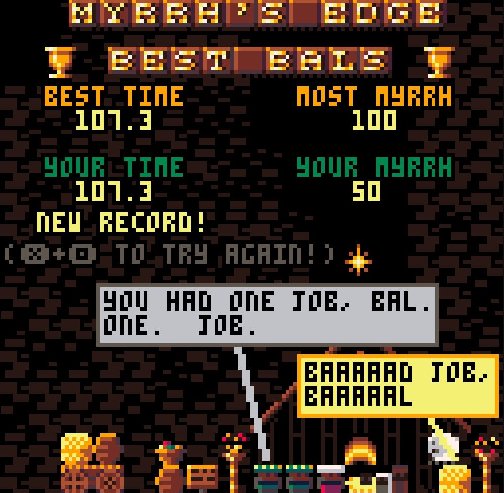 #Pico8 platformer! It's #24 in the#Pico8Advent calendar! Started with a horrible PUN (a parkour game: one of the Three Wise Men who's late to the manger with a gift...called MYRRH'S EDGE) & turned into lotsa FUN! Enjoy! https://lexaloffle.com/bbs/?tid=36076 pic.twitter.com/5GLIBqfBQ3Prikaži ovu nitHvala. Twitter će to iskoristiti za poboljšanje vaše vremenske crte. PoništiPoništi -
