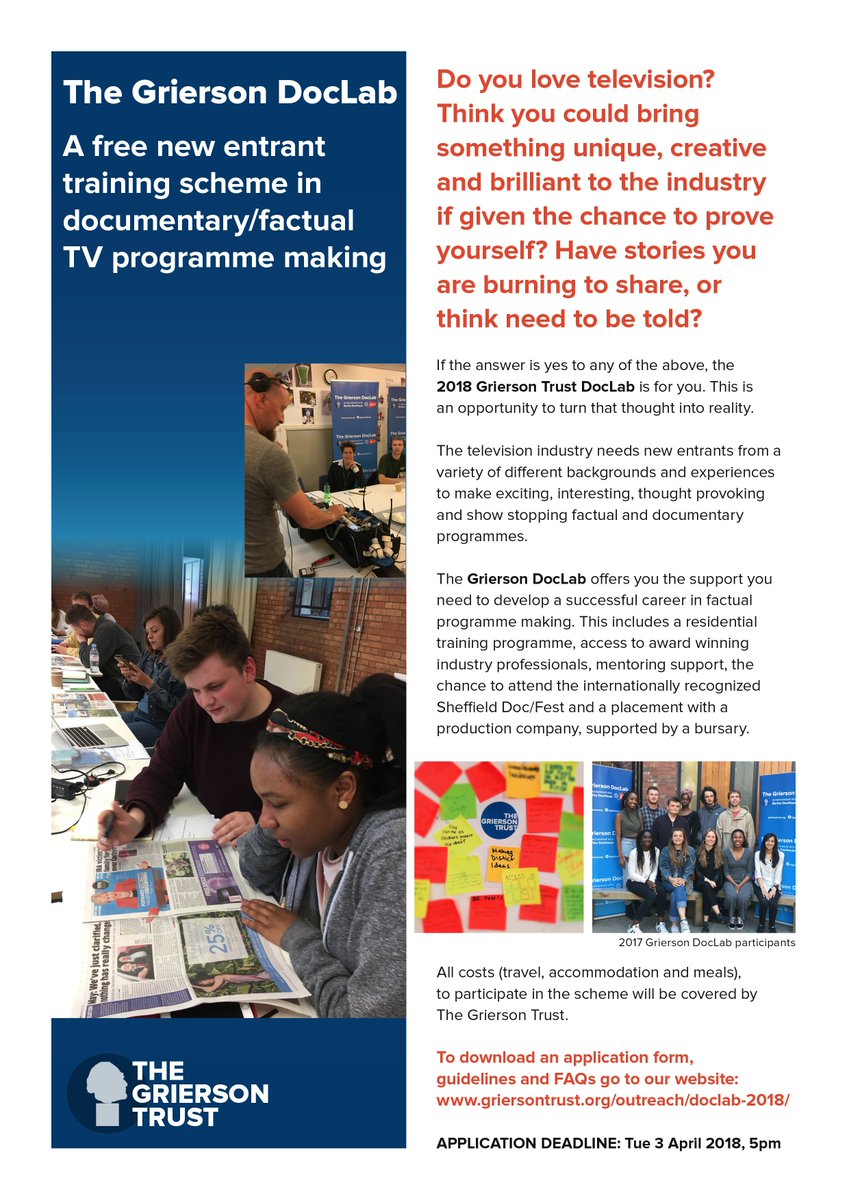 @careersbham Ever watched documentaries on the TV & thought, wouldn’t it be great to make such programmes, but didn’t know how to get in? Watch how you can benefit from being a@griersontrust#GriersonDocLab new entrant trainee. Must be aged 18-25 http://ow.ly/W8tO30ih5lM pic.twitter.com/1dmfrcOeAO