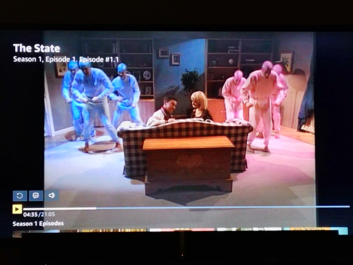 The Hormones bit is in episode 1! So that's something. The bit where they're supposed to end it with the "Humpty Dance" but instead we get some bland music library shit. It's The State and I remain conflicted.pic.twitter.com/N8c5KsYES6