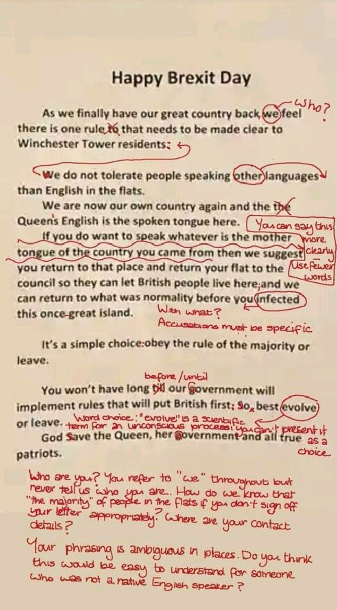 Tip to xenophobes: if you're going to write a poster insisting on "Queens English", remember to brush up on your own skills first.