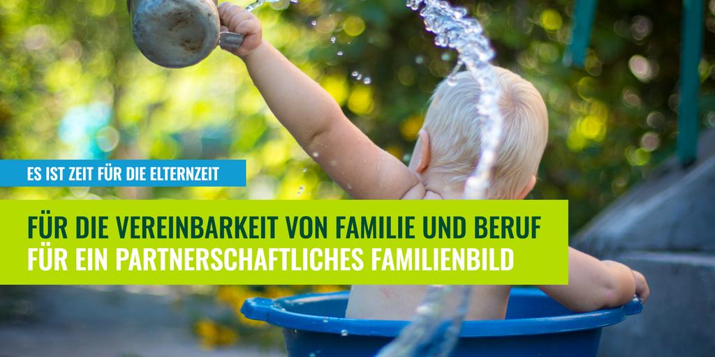 #EsistZeit für die#Elternzeit! Wir setzen uns für eine Elternzeit von 14 Wochen für beide Elternteile bei beidseitiger Erwerbstätigkeit ein. Für die Vereinbarkeit von Familie und Beruf und für ein partnerschaftliches Familienbild!pic.twitter.com/J515C36n71