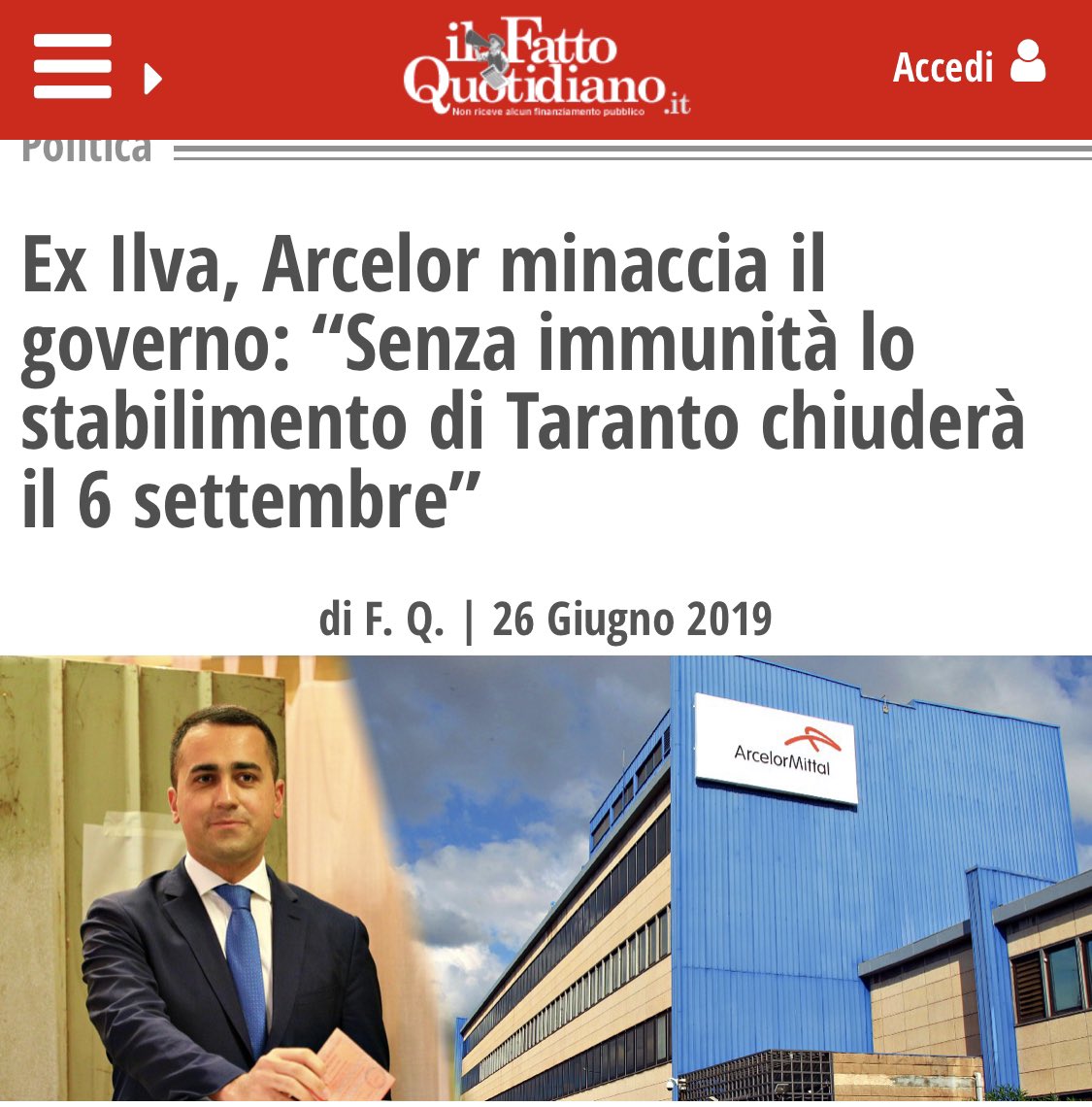 #DiMaio crede di recuperare voti smentendo se stesso. Ma a pagare e’ l’ambiente, 20.000 lavoratori, 1% di Pil.#ArcelorMittalpic.twitter.com/4RNnJcc0G1