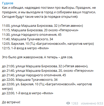График сегодняшних точек по сбору подписей (обновил):pic.twitter.com/7t4eiazSHL