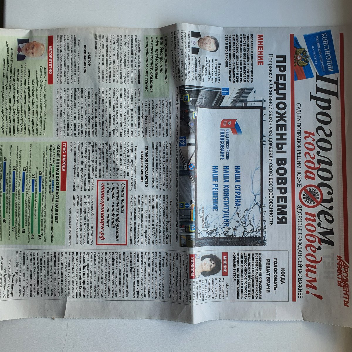 Поправки в Конституцию ПРЕДЛОЖЕНЫ ВОВРЕМЯ, сообщает сегодня москвичам газета «Аргументы и факты», давно уже со всеми потрохами принадлежащая государству. Тираж - 1 400 000. Идеальный способ распространить коронавирус.pic.twitter.com/uuXPS92l8p
