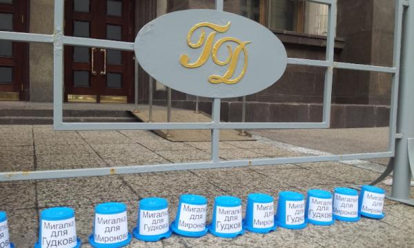 Мегакреатив!) RT @WM_Parovoz "Россия Молодая" принесла к Думе мигалки для Миронова (@mironov_ru) и Гудковыхpic.twitter.com/UNBjXAgt