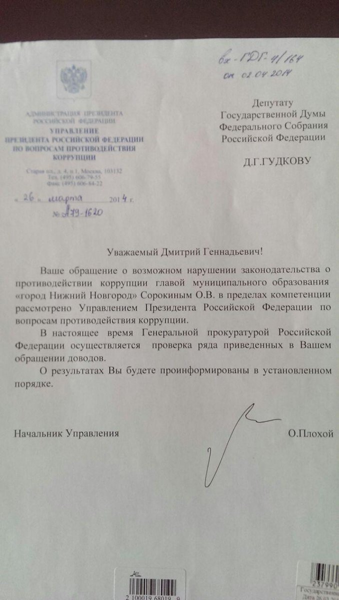 “@gudkovd: Журналистам в мэрии #НН сообщили, что СКР проверяет мэра Сорокина по моему запросу pic.twitter.com/zxCgLGM6wf”