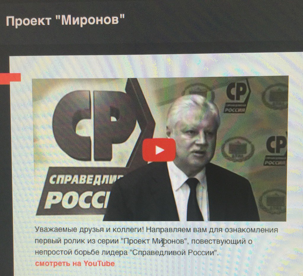Получил на почту: проект “Миронов”,повествующий о непростой борьбе лидера “Справедливой России” #загосфинансиррваниеpic.twitter.com/W8XMcoQN8N