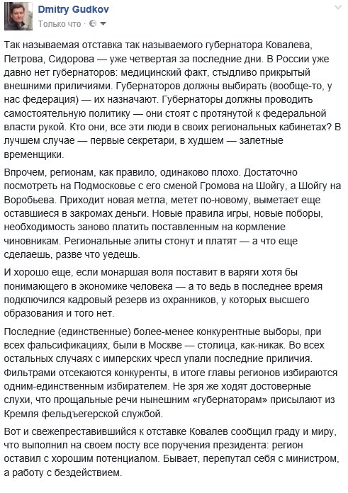 Есть в РФ губернатор. Один. Кадыров.
