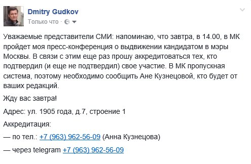 Дмитрий Гудков‏Verified account @gudkovd 19 Feb 2017