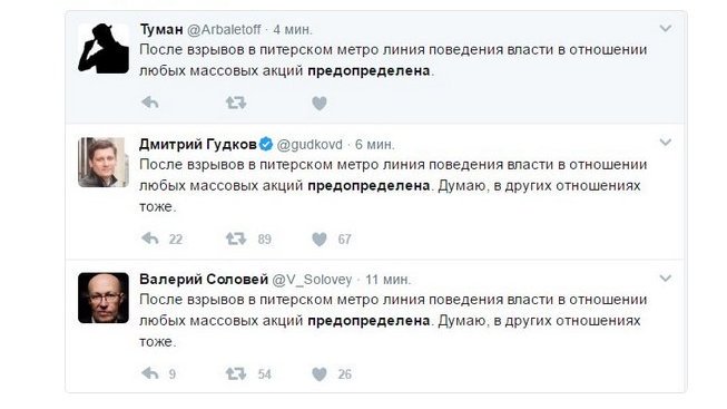 После взрывов в питерском метро линия поведения власти в отношении любых массовых акций предопределена. Думаю, в других отношениях тоже.