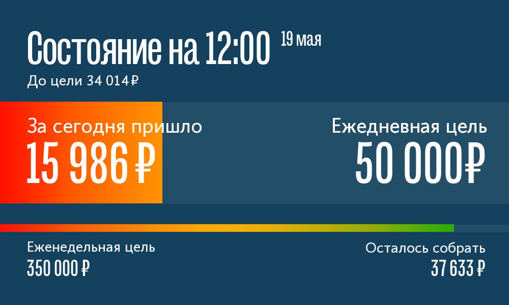 Пока собрали 15К из 50К “@donate_mundep: Состояние на 12:00 19 мая