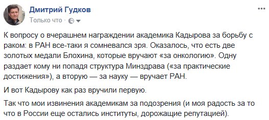 И тем не менее, за какие именно достижения фейковый Минздрав наградил Кадырова?