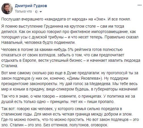 Зачем ему 5% рейтинга? Я вообще не понимаю зачем он согласился участвовать в этом и что ему пообещали. В интервью @yurydud Грудинин заявил что у него нет никаких договоренностей с АП так оно и есть за него это сделал Г.А.Зюганов