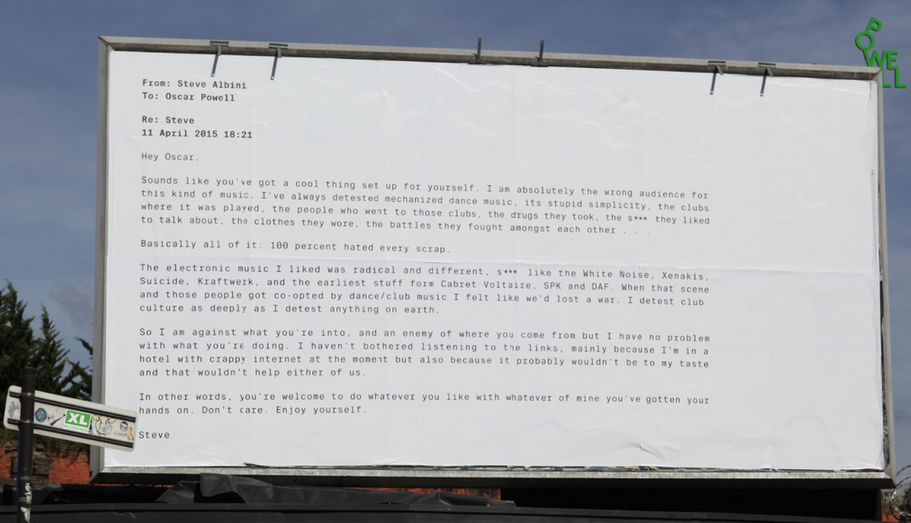 XL artist Powell emails Steve Albini about using a sample and puts his reply on a billboard http://bit.ly/1JC68kV pic.twitter.com/iJ8ODOROsy
