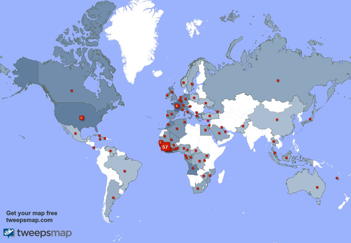 J'ai 33 nouveaux abonnés, de Guinée, Angola, et plus la semaine dernière. Voir http://tweepsmap.com/!guineefoot pic.twitter.com/Ao5v8LHFq8
