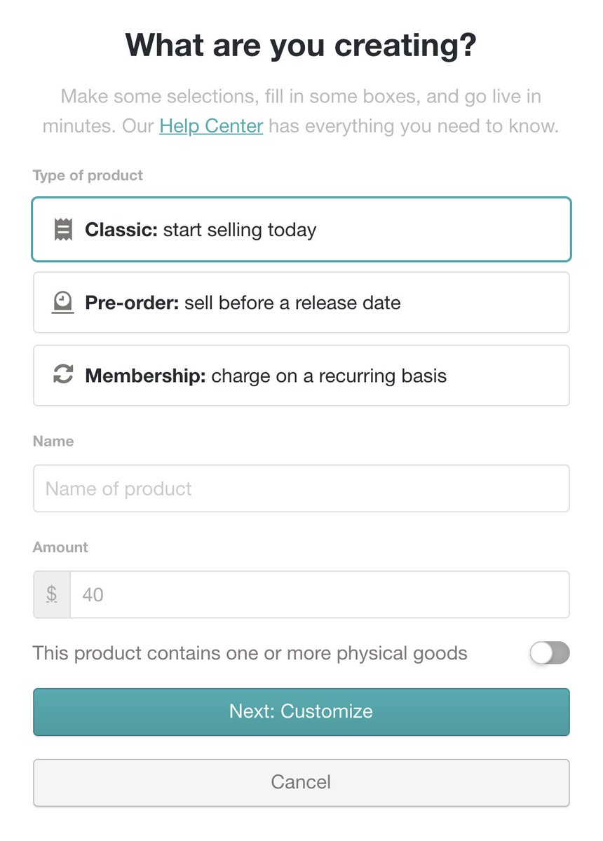 What are you creating? Adding a product on Gumroad just got snappier: now just one step, instead of three.pic.twitter.com/cWcCzz2aXB