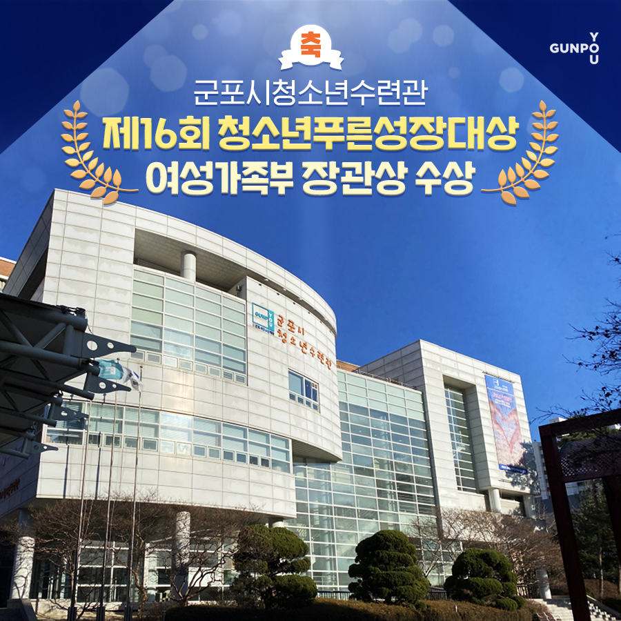 12월 16일 여성가족부가 주최하는 「제16회 청소년푸른성장대상」에서 군포시청소년수련관이 전국 청소년 수련시설 중 단일기관으로 여성가족부 장관상 수상