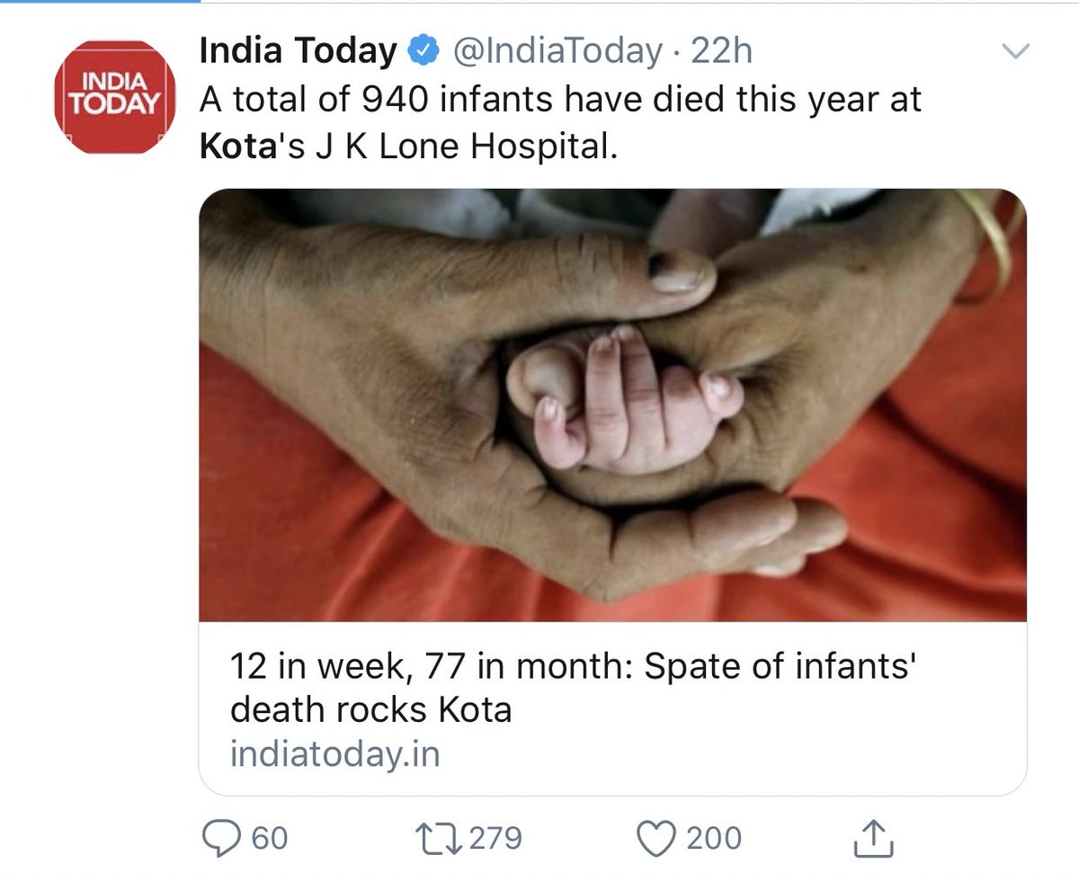 Remember how the media went after Gorakhpur deaths and never revisited the story because they did not want to report CM Yogi's immunisation drive had worked? Same lot of editors, reporters, opedists is now criminally silent on Kota deaths. Suddenly children don't matter anymore.pic.twitter.com/4q2veZG5Dm