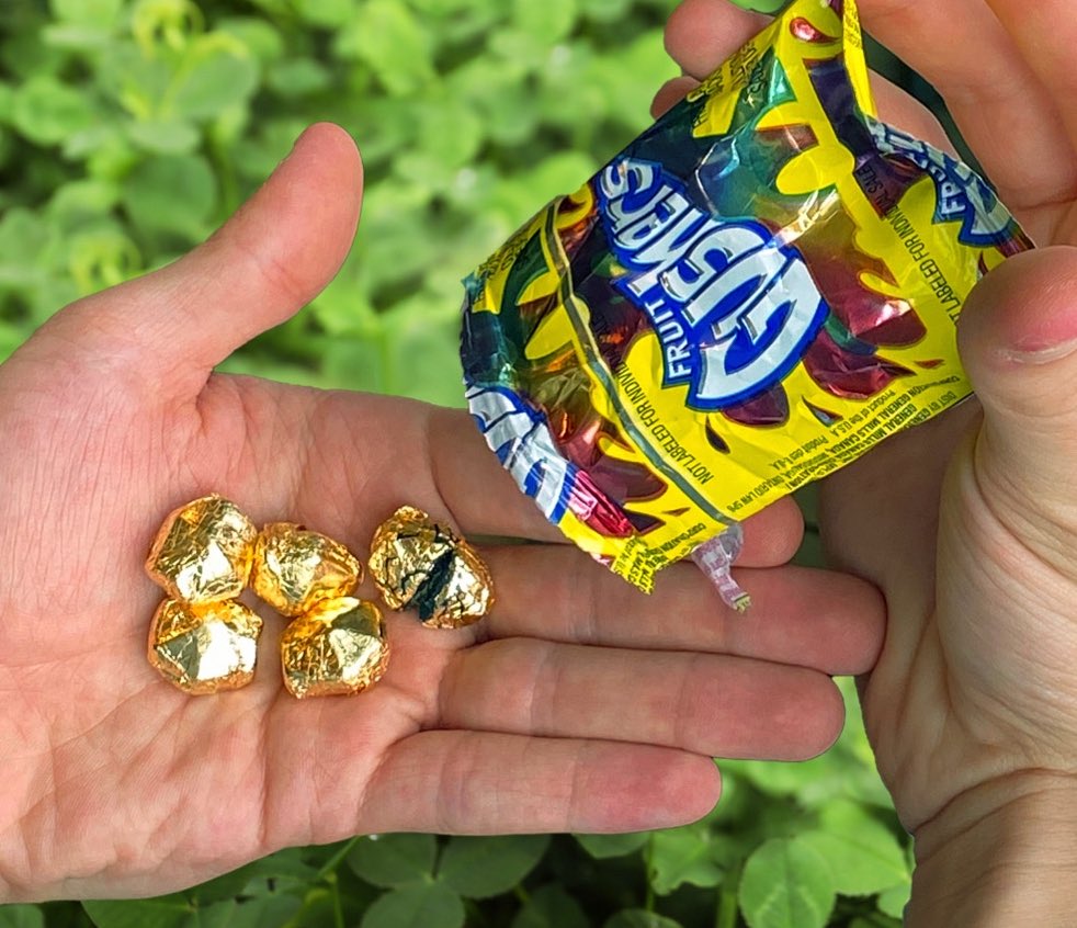 Red Gushers waiting to be eaten last like