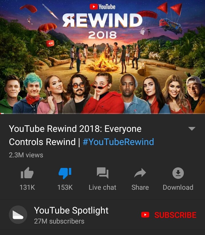 Congratulations @TeamYouTube on having the first ever #YouTubeRewind video that has more dislikes than likes!