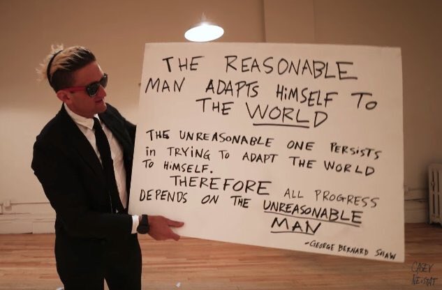 “The reasonable man adapts to the world, The unreasonable one persists in trying to adapt the world to himself therefore all progress depends on the UNREASONABLE MAN” George Bernard Shaw
